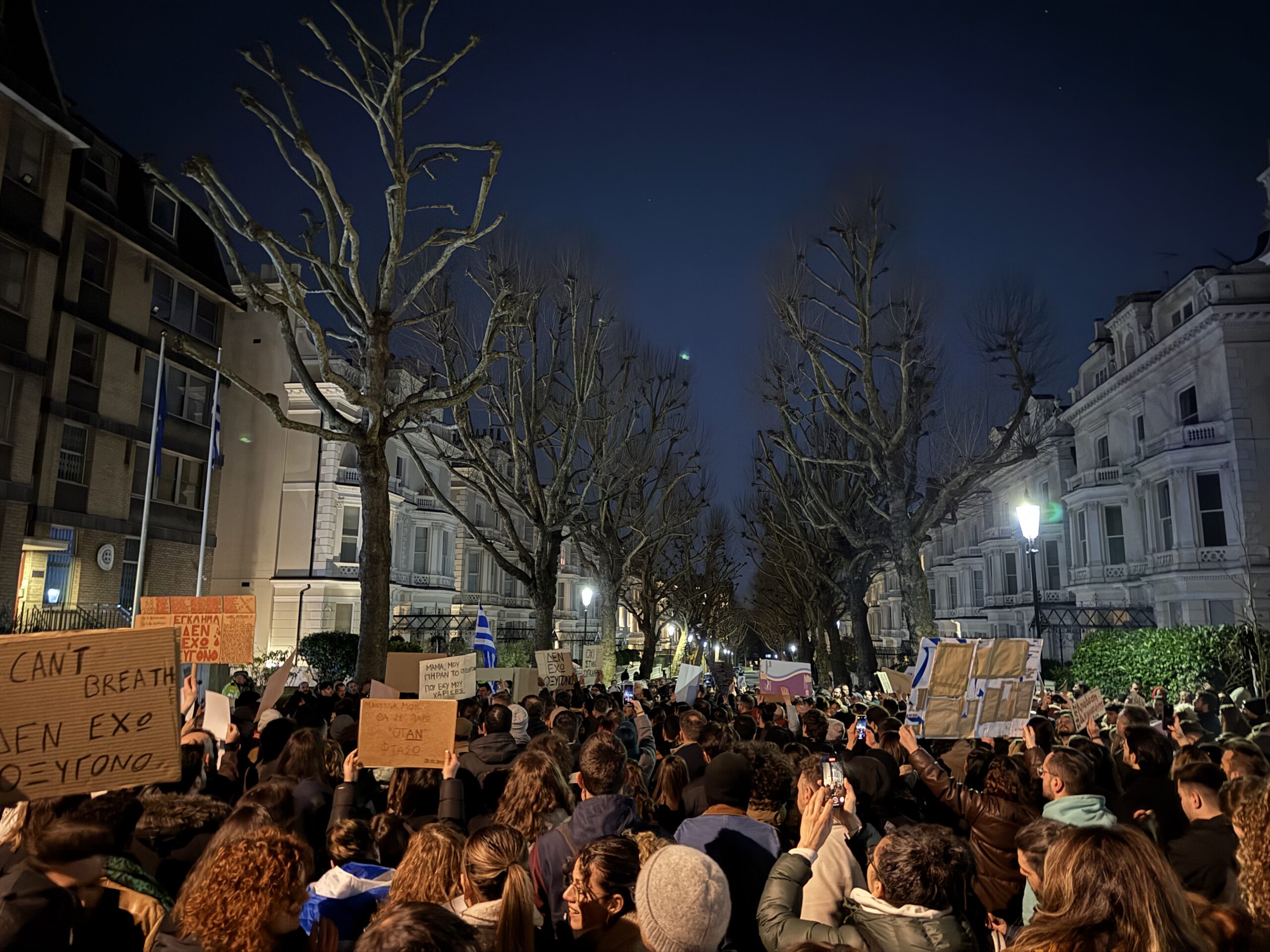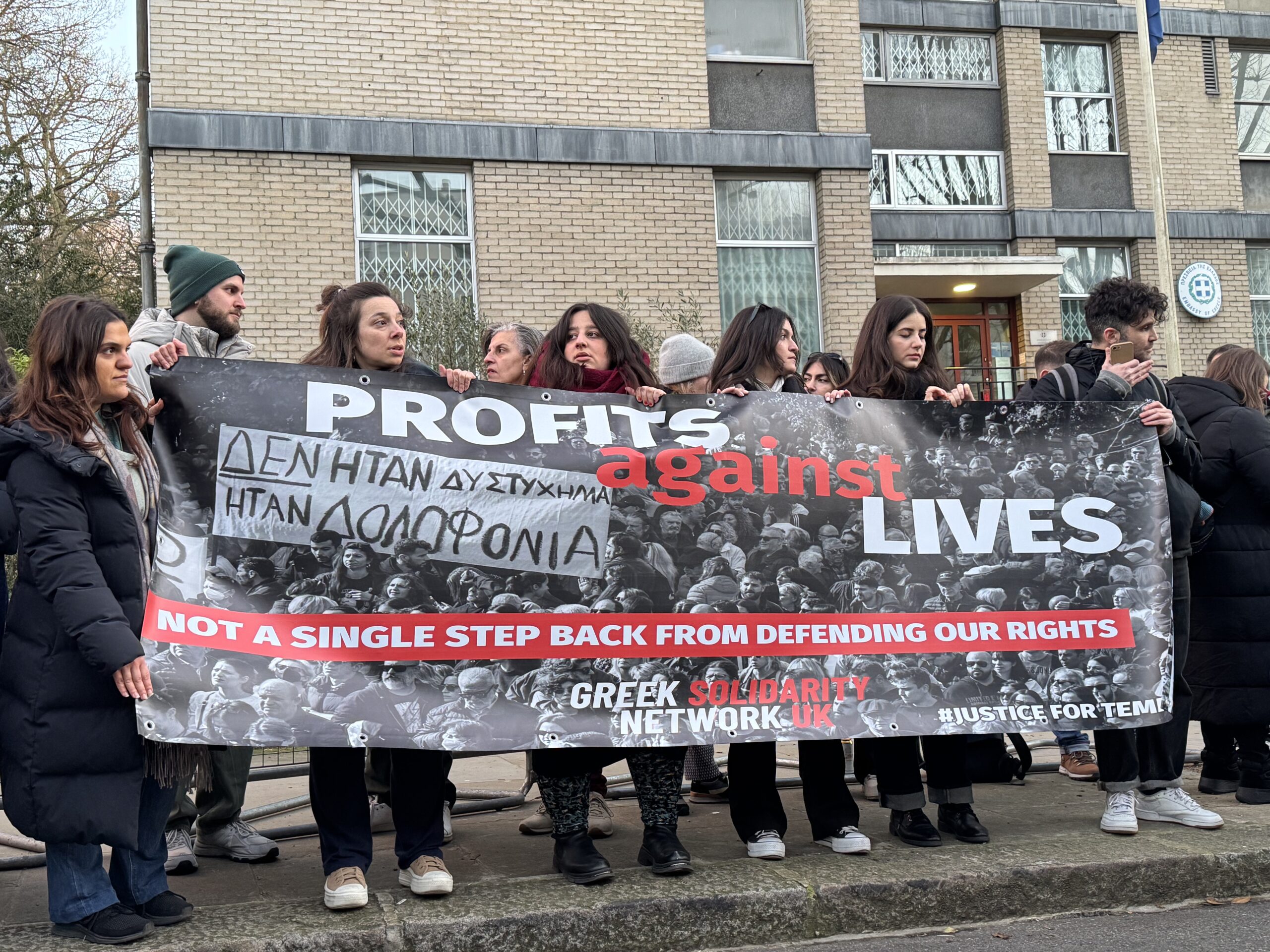 Τέμπη: Μεγάλη συγκέντρωση έξω από την ελληνική πρεσβεία στο Λονδίνο